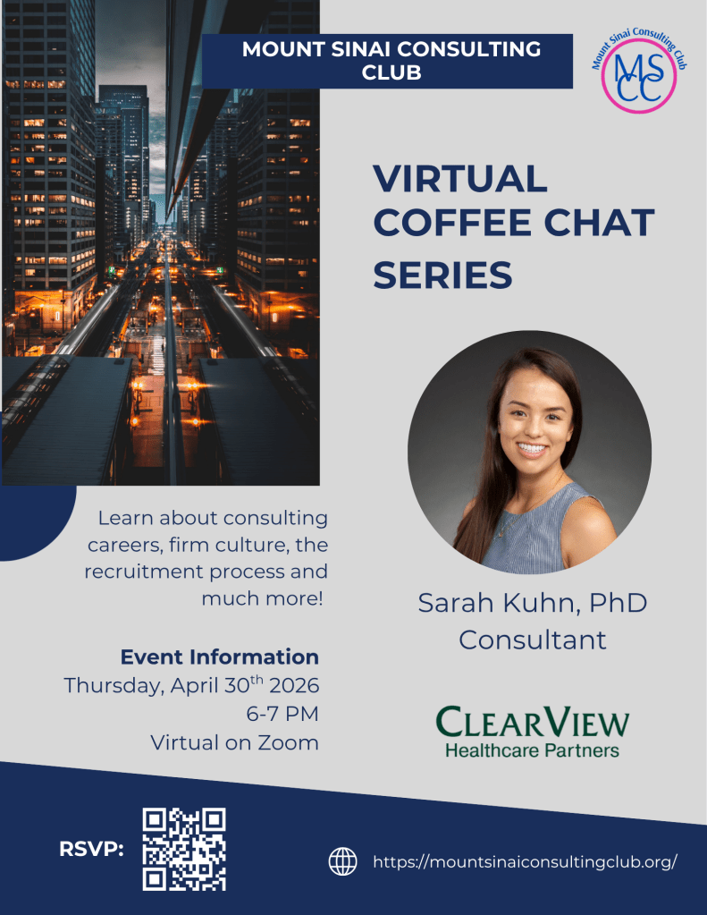 Join us for our virtual coffee chat series featuring a current consultant from Clearview Healthcare Partners, Sarah Kuhn, PhD!